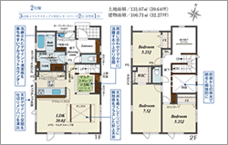 | 土地面積 | 131.06㎡(39.64坪)/2号棟131.07㎡(39.64坪) |